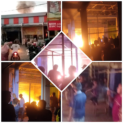 Sejauh ini belum diketahui berapa kerugian materiil namun sudah jelas beberapa kios sembako habis terbakar dan dari pihak berwenang belum bisa memastikan penyebab terjadinya kebakaran tersebut (Ans)